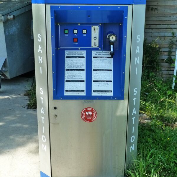 Auf unserem Gelände wurde eine Entsorgungsstation für Wohnmobile installiert. An dieser Station kann ebenfalls Frischwasser gebunkert werden, Strom liegt an den Stellplätzen. Die sanitären Anlagen befinden sich in unmittelbarer Nähe zu den Stellplätzen.